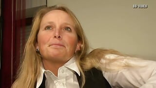 曲がりくねったドイツの金髪が犯されるすべての種類の位置